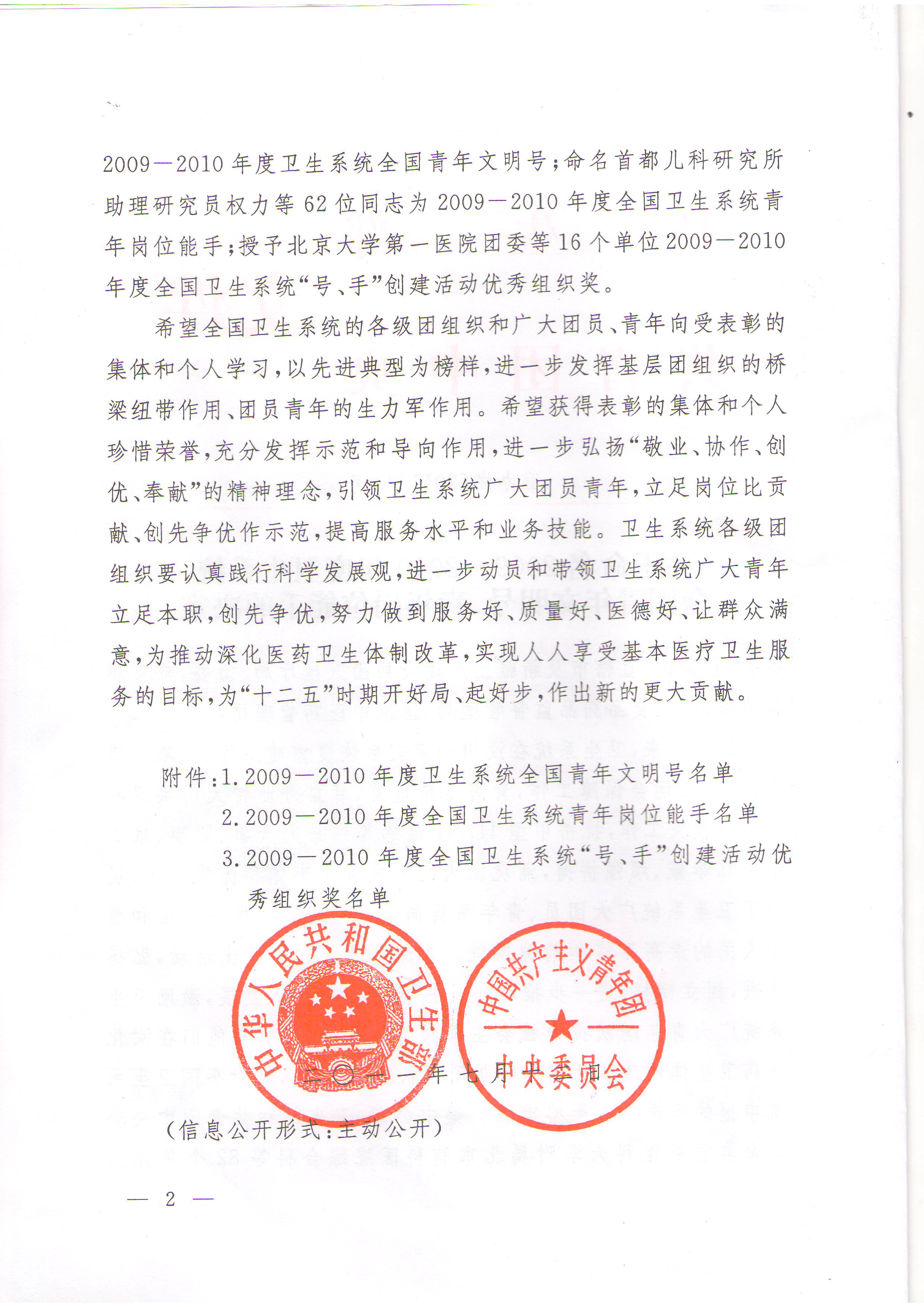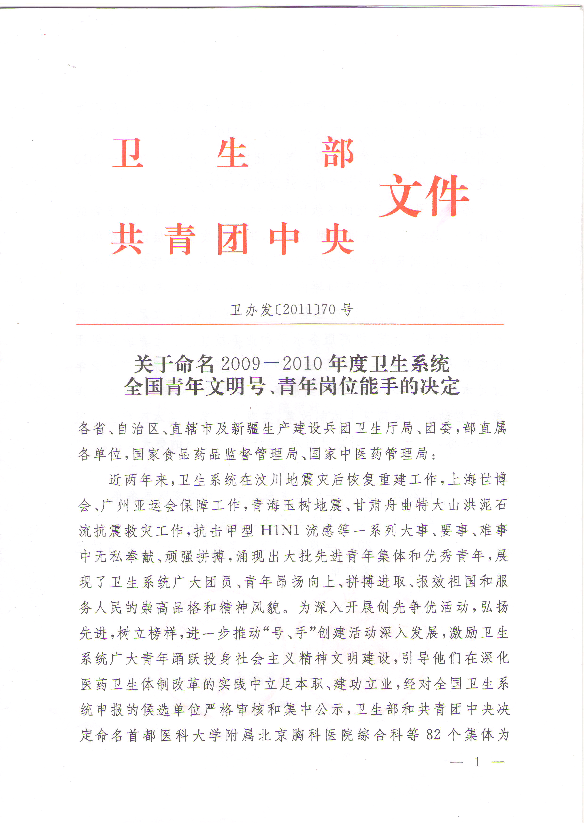 6. 元之源健康产业有限责任公司2010年被评为全国“青年文明号”文件