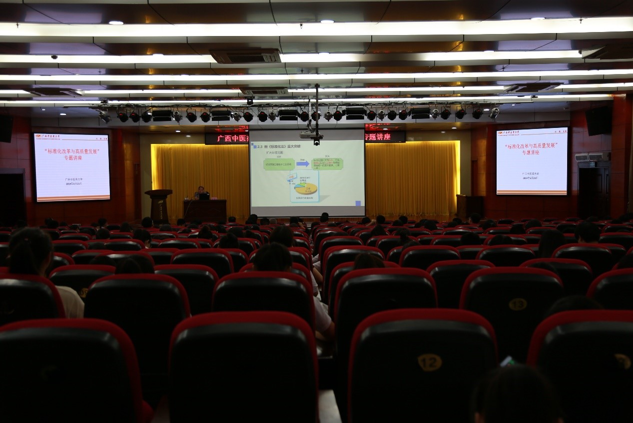 6月21日下午,广西市场监督管理局标准化处处长苏彩和博士应邀到鸭脖开展标准化相关专题讲座。学校各二级单位、部门的科研管理人员以及对标准化研究感兴趣的师生近300人参加会议。讲座由科技处处长肖健主持。