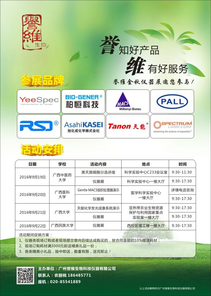 关于广西中医药科学实验中心“美天旎组织处理器”相关培训的通知 发布时间:2016-09-12 09:09:11 浏览次数: 次 【字体:小 大】 时间:2016年9月19日星期一 上午9:30 地点:YABO鸭脖(仙葫校区)科学实验中心会议室C233 内容:1.gentelMACS组织处理器的现场操作演示及仪器操作规程讲解 2.相关讲座 3.美天旎仪器展示 请各位感兴趣的老师、同学踊跃参加! 分享到: 【打印正文】