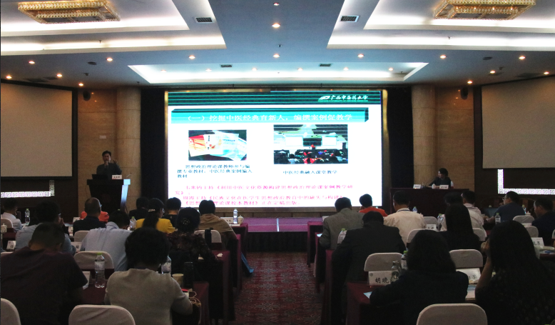 鸭脖马克思主义学院院长韦兆钧在会上作了以YABO鸭脖马克思主义学院办学特色为主题的演讲。会上介绍了鸭脖马院的基本概况并展现了鸭脖校园文化建设成果。他提出了马院如何在中医药院校生存下来并办出特色的观点,并认为可从立足地方搞科研,打造特色建品牌,大健康产业的优势着手。该经验分享获得了与会兄弟单位的一致认同。