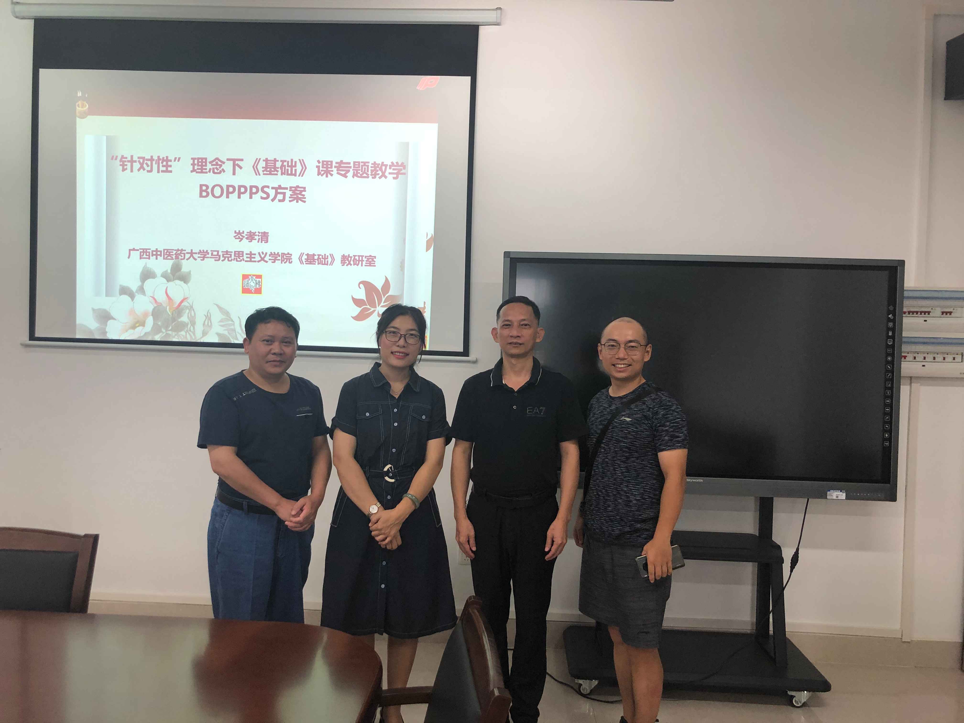 9月22日,思想道德修养与法律基础基础教研室(以下简称“基础教研室”)开展以“针对性”为理念的集体备课及研讨活动,2019年度课程思政教学改革重点项目“中医人文精神与《思想道德修养与法律基础》课程建设主持人岑孝清博士做报告。