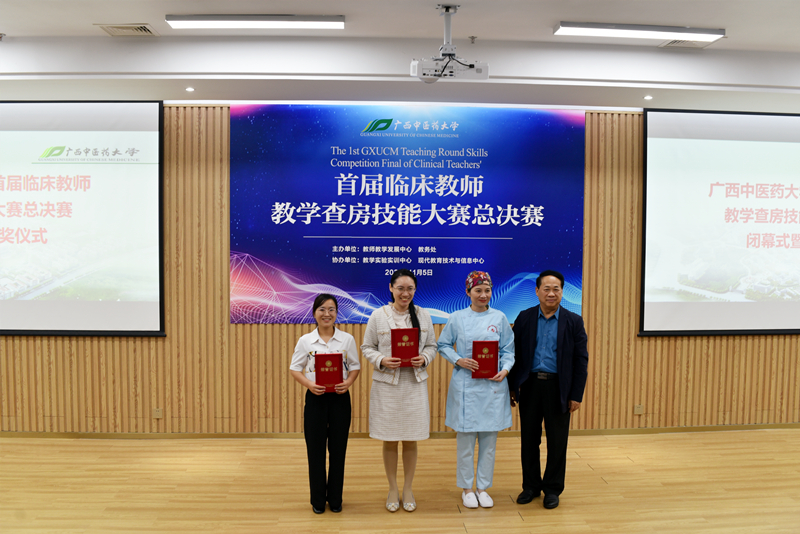 总决赛上,我院中医组、西医组及护理组共9支代表队与第一临床医学院、壮医临床医学院、第三临床医学院(柳州市中医医院)的22支队伍同台竞技。经过一天的激烈角逐,我院斩获一等奖2个(儿科赵敏芳、手术麻醉科廖华)、二等奖4个(产科刘卓、妇科一区韦林、胃肠外科高丕尧、消化内科二区庞春)、三等奖2个(中医经典病房冯原、胸心血管外科韦乐乐)、优秀奖1个(神经内科二区欧俐羽)及优秀组织奖1个,其中我院中医组及护理组代表队包揽总决赛第一名。