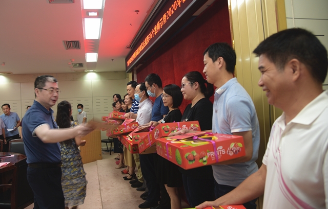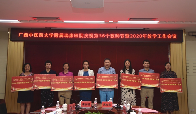 金秋九月,丹桂飘香。在第36个教师节即将来临之际,9月7日下午,我院召开第36个教师节庆祝大会暨2020年教学工作会议。院长唐友明,党委书记高宏君,党委副书记、副院长陈日兰,副院长、总会计师庞刚,副院长韦思尊,纪委书记黄建民,副院长陈锋、宋策出席会议,并向全院14个教研室代表赠送果篮和慰问金,祝愿老师们桃李满天下。各教研室、行政职能部门、临床医技科室负责人,教学秘书、获表彰人员、教师代表、住培学员代表、实习生代表等参加会议。大会由高宏君主持。