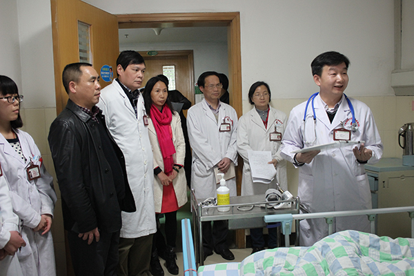 为进一步规范我院教学查房,加强临床实践教学,提高教育教学质量,2016年2月19日下午,由医院党委书记唐友明和党委副书记、纪委书记陈日兰带队,教务学生部组织院内教学检查专家组,对全院临床科室教学查房开展情况进行了集中检查。