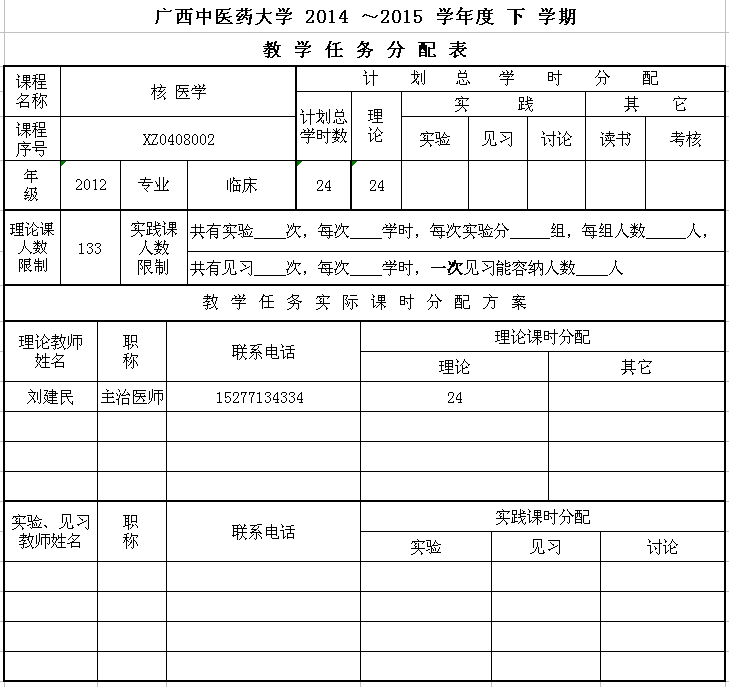 2014-2015下核医学学分制任务分配表
