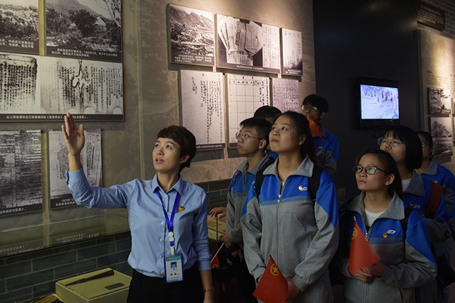 授旗仪式结束后,大家一同进入广西革命纪念馆内参观。蒋娴老师为大家讲解了百色起义,王玉洁老师带领同学们清唱一曲游击队战歌,还有多位同学担任志愿讲解员,结合当代青年的使命与责任,说出自己对革命精神的感悟与理解。