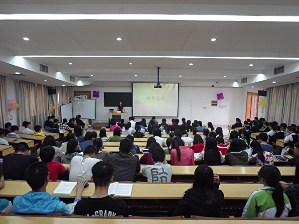 奋斗的青春最美丽,会上通过一段段精彩的视频剪影让在场的老师与同学们动情回顾了我院2014年在学科竞赛、社会实践、文艺体育活动等方面的奋斗历程。视频当中的每一幅画面都饱含了老师和同学们齐心努力的汗水,共同成长的酸甜,我院陈日兰副书记与教学部老师们的身影始终与同学们紧紧相依。视频末尾,团总支学生会成员们通过一段成长感悟向辛勤培育学生的领导老师们表达了深切的感恩之情,场内洋溢着师生温情的暖意。
