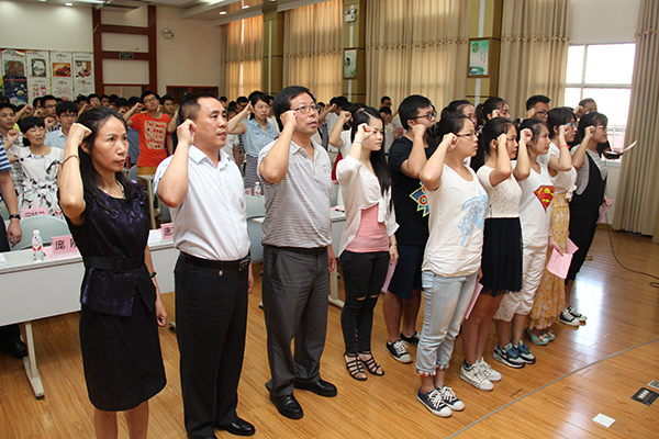 最后,教务学生部副主任汪国翔带领新党员进行入党宣誓、老党员重温入党誓词。庄严地表达了自觉遵守党的章程,终身践行入党誓词,始终牢记全心全意为人民服务的宗旨,服务人民,奉献社会的决心。