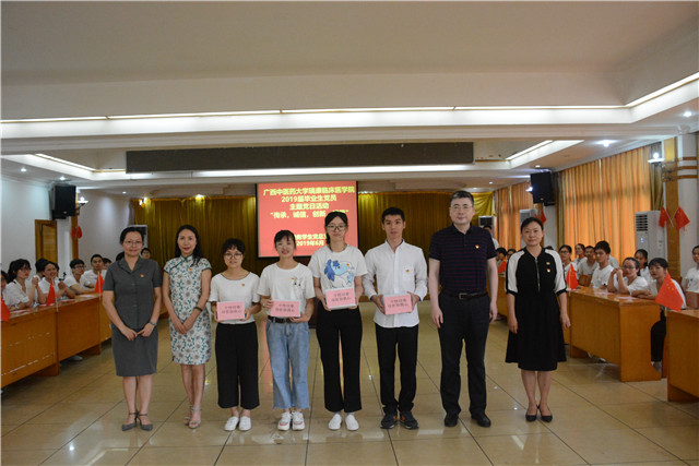 我院党委书记高宏君教授,党委副书记、副院长陈日兰教授,教务学生党总支书记何颖、学生科科长王瑜及全体学生科老师出席活动,2019届毕业生全体党员以及2015级党员代表近100人参加活动。