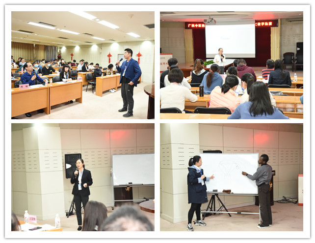 本次比赛由YABO鸭脖国际教育学院副院长韦文朗、外语部副主任周锋、国际教育学院学生工作办公室主任陈斌、我院五官科学教研室主任李淑琳以及YABO鸭脖首届全英文教学比赛第一名获得者吴媛媛担任评委。为增强英文课堂互动效果,体现全英文教学特色,本次比赛邀请了5名外籍留学生作为互动学生代表参加现场教学互动。活动由教务科主任汪国翔主持。