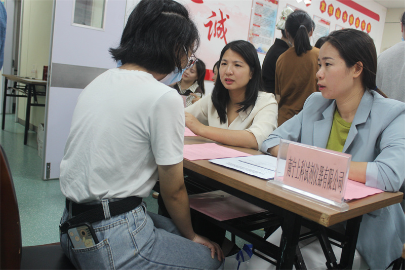 招聘会上,迈瑞生物南宁分公司经理袁智辉以《寻找攀登者》为题给同学们上了一场生动的就业指导讲座。讲座从企业的视角来分析企业的用人需求,学生能够以终为始在不同的阶段能够做好定位制定目标,不断提升职场能力。他指导学生注意面试要领,学会制作简历,从细节方面做好就业的准备。