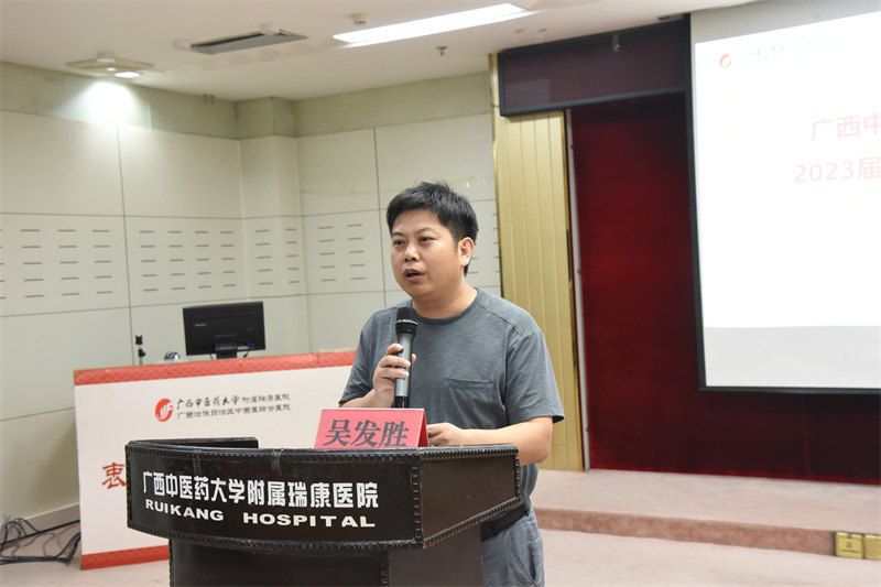 陈日兰副书记首先对2023届医学类实习生顺利完成实习表示祝贺,对他们在疫情期间能够坚守岗位给予充分肯定,并表示感谢。随后她对实习生们的就业目标和职业规划给出了建议和指导,并提出四点希望:一是与新生做好交接,传承好瑞康精神;二是不忘初心、牢记使命,努力成为一名掌握扎实三基知识、拥有良好科研素养、为人民健康服务的合格医学人才;三是精益求精,刻苦钻研,虚心求教,学习先进,始终坚持练就为人民服务的本领;四是保持联系、加强沟通,瑞康医院是大家坚强的后盾,永远的家。
