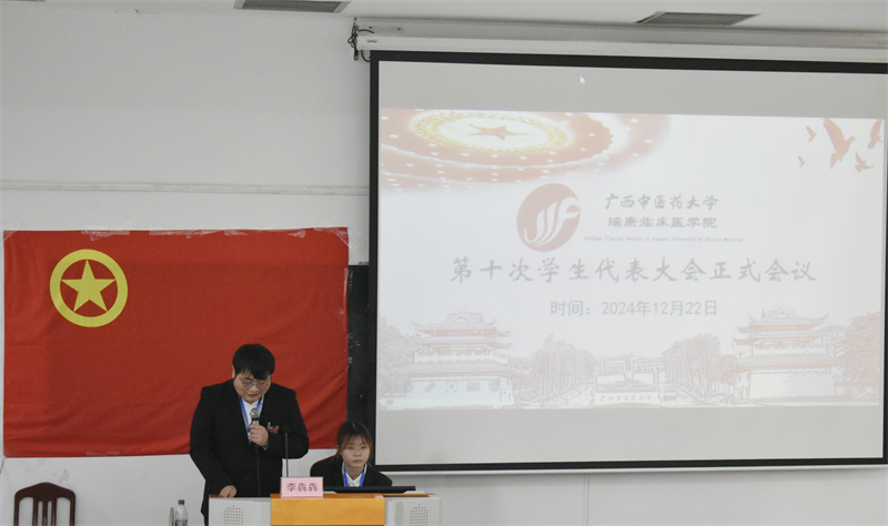 为深入学习习近平新时代中国特色社会主义思想,全面贯彻党的二十大精神、二十届三中全会精神、习近平总书记关于青年工作的重要思想和关于教育的重要论述,团结带领我院广大青年学生坚定理想信念,为学院发展建设不懈奋斗,12月22日下午,YABO鸭脖瑞康临床医学院在明秀校区西梯三教室召开了第十次学生代表大会。瑞康临床医学院第二十五届学生会秘书长、教师代表王玉洁以及高等职业技术学院3名学生代表列席会议,142名正式代表出席大会。