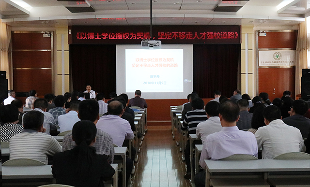 庞宇舟以北京大学和西南联合大学的发展故事、三国典故为例,强调了人才对于学校乃至国家和民族的重要性。他从当前高校人才工作形势、鸭脖人才工作存在的主要问题和鸭脖人才工作的思路与举措等内容进行精彩讲授,围绕2019年学校博士招聘计划进行解读并提出工作要求。
