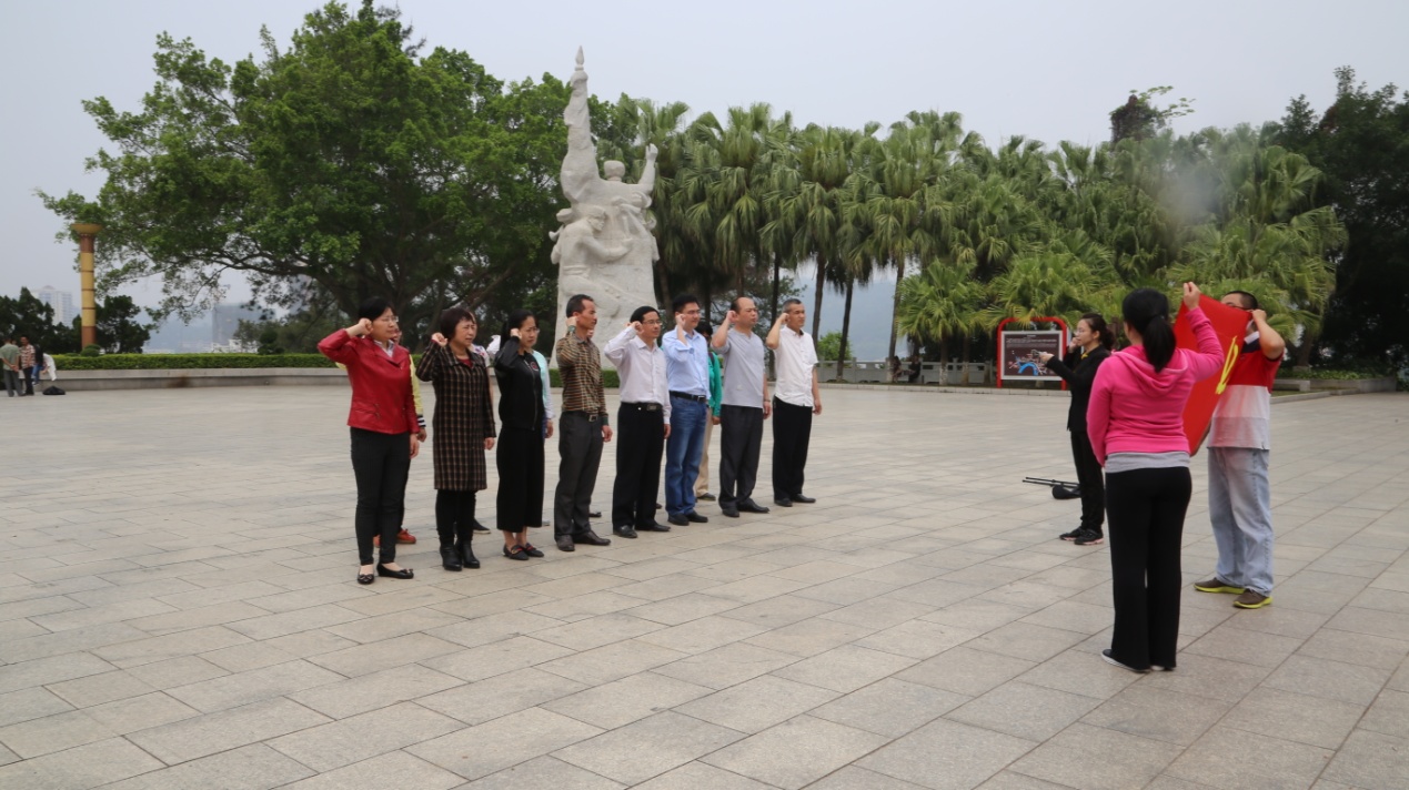 支部一行首先来到了百色纪念碑前向革命先烈进行了默哀、梁策老师带领全体党员在党旗下进行了入党宣誓,重温了我们的入党初心。蒋才武书记进行了讲话,希望全体党员不忘初心,深刻学习革命先辈坚定的共产主义理想和敢于牺牲的精神,全心全意为人民服务,努力工作,充分发挥共产党员的先锋模范作用。