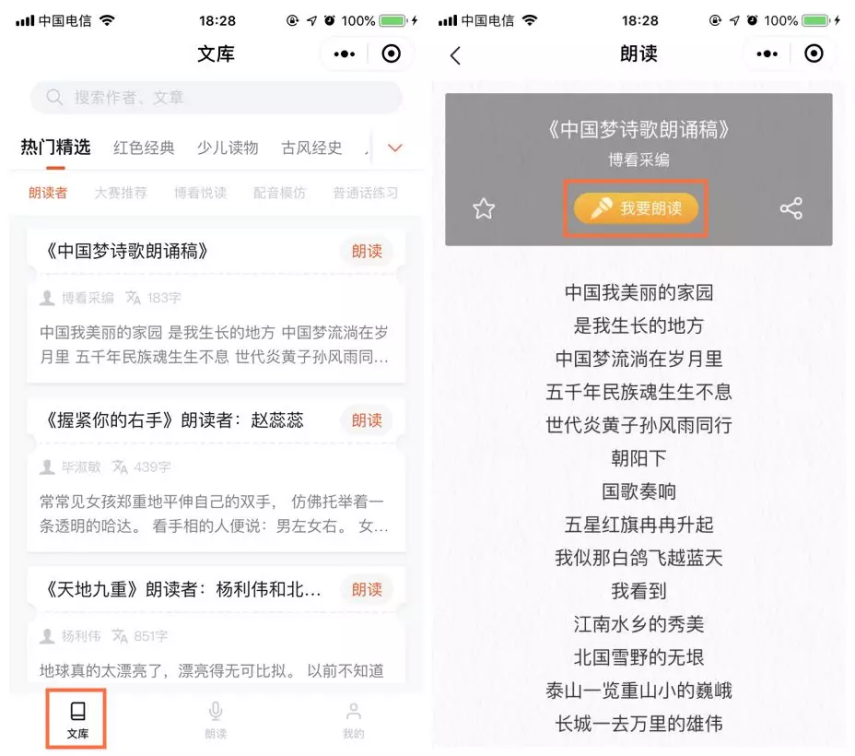 2.诵读素材可来自博看朗读亭也可自带书本朗读;朗读时长不超过5分钟;