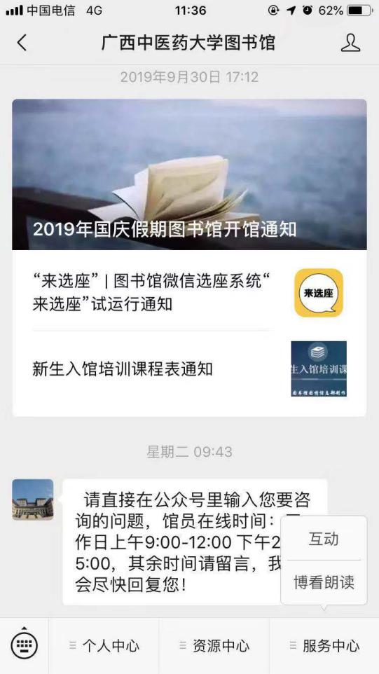 1、在“YABO鸭脖图书馆”微信公众号菜单,点击“服务中心”——“博看朗读”,长按识别小程序二维码进入。
