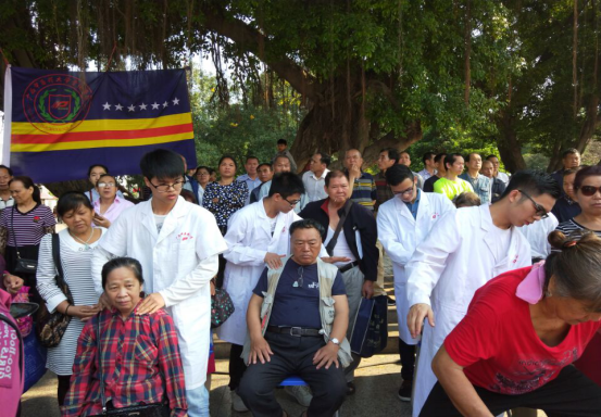 紧接着我院志愿服务团队展开义诊活动,主要为手法按摩,帮助市民驱除劳累,放松身体。义诊区非常受欢迎,市民们一个接一个地过来,我们的志愿服务团队忙得满头大汗。现场的市民为志愿者们送上了纸巾,志愿者们十分感动,之前的疲累也一扫而光。