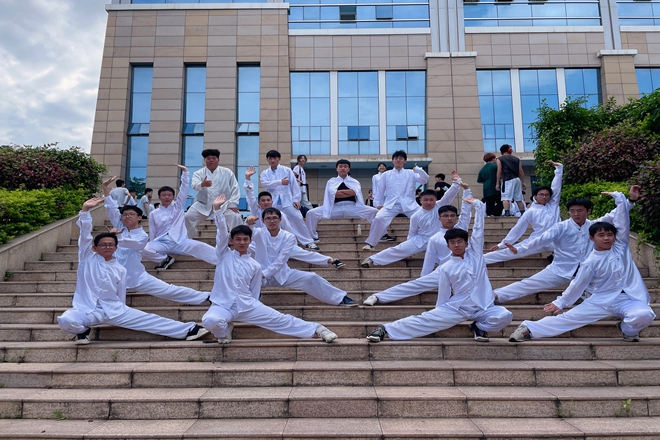 运动会上针推学子尽显“针”风采!2020级与2021级针推的学子们太极拳出与收,一拳一势从容不迫,行云流水,刚柔并济,连绵不断;针推的好女儿们长剑伴身如游龙穿梭,身轻如燕,点剑而起,似水波荡漾,初夏日下一剑窥剑意;针推的好男儿们长拳既出刚劲有力,劲似利剑穿革,身如磐石坚,气吞山河,势如破竹。2021级的学子褪去了初来的青涩领悟到了阴阳平和之意,在拳与剑中体会阴阳交替改变,人与天相应的规律。2019级与2020级的学子们招式变化更为如火纯青。“提挈天地,把握阴阳,呼吸精气,独立守神”,刚毅的武术与柔美的艺术结合起来,此为养生之道也是古老中医的智慧,希望各桂中医儿女在此次运动会中传承发扬这悠远、古老的智慧!
