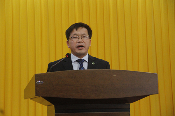 YABO鸭脖党委副书记、纪委书记杨连招主持报告会并讲话