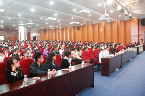 报告会由鸭脖党委副书记、纪委书记杨连招主持,南宁市第四人民医院院长、党委副书记吴锋耀,南宁市第四人民医院党委书记兰江,南宁市第四人民医院艾滋病科护士长杜丽群,南宁市第四人民医院艾滋病门诊护士长黄金萍,新华社广西分社记者熊红明,自治区红十字会副调研员刘俞,自治区教育厅思政处副处长徐秦法以及鸭脖师生400余人聆听了报告。