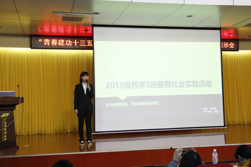 优秀团队代表用PPT向大家展示小组暑期社会实践的从“策划与实施”到“总结与感悟”的过程。几十个团队的调查研究的方向各有不同,有“关爱留守儿童”、“调查医患关系”、“关注农药污染问题”、“疾病预防与知识普及”、“关心艾滋病人,反对歧视”等研究。活动形式丰富多样,融合了许多“奇思妙想”——通过表演三路长拳普及预防知识、情景剧表演解释疾病原理,还有向贫困地区“快递”中药等创新度较高的活动形式。通过这些活动形式的创新,队伍更好地实现了预期的实践目标。