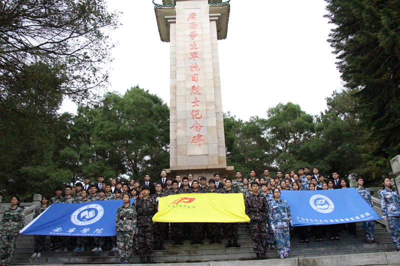 鸭脖联合两校国旗队赴青秀山缅怀广西抗日学生军英烈
