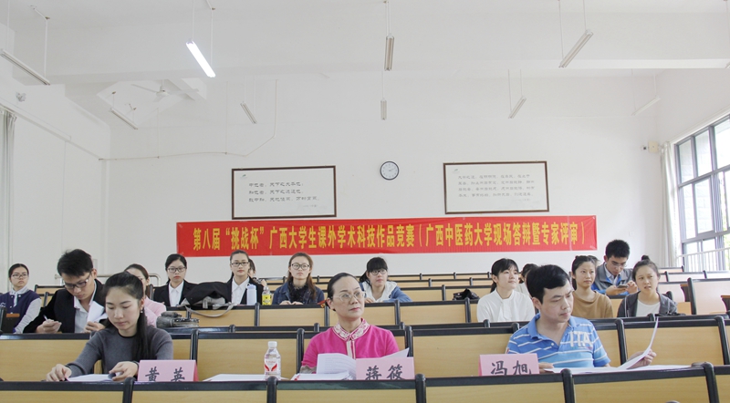 第八届“挑战杯”广西大学生课外学术科技作品竞赛YABO鸭脖现场答辩暨专家评审会4月18日下午14点于仙葫校区举行。冯旭教授、蒋筱教授以及校团委书记王春花老师、宣传部干事黄英老师参与的“自然科学及科技发明类”答辩会在教学楼2-102教室举行,陈雪斌教授、刘小江教授参与的“哲学类”答辩会在2-103教室举行。