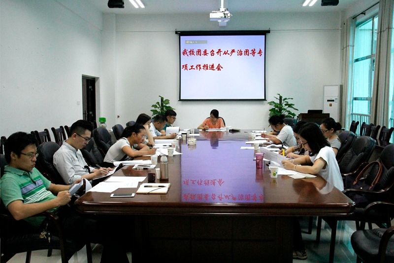 5月11日上午,鸭脖团委于仙葫校区317会议室召开从严治团等专项工作推进会。各学院团委书记参加本次会议,会议由校团委组织部部长陈晓东主持。