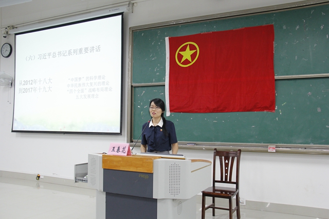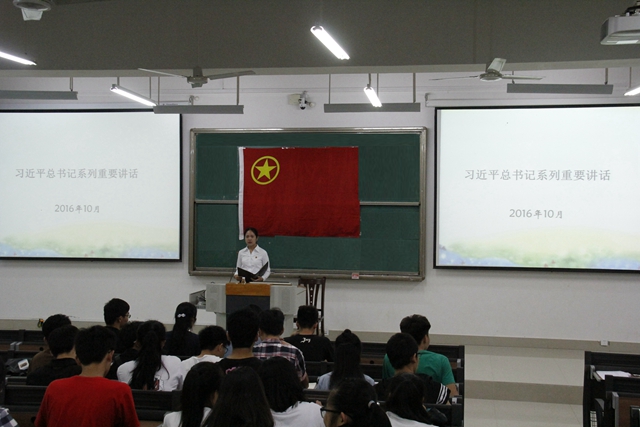 为使鸭脖学生更好地学习习近平总书记系列重要讲话精神、落实团中央“一学一做”教育实践要求,由鸭脖团委书记王春花老师主讲的“学习总书记讲话,做合格共青团员”主题团课于5月24日晚7点在仙葫校区教学楼1-101教室召开。各学生组织代表、各班团支部书记参加了本次团课。