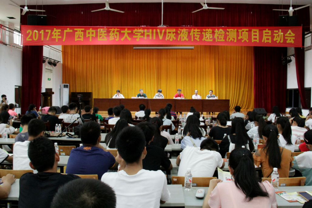9月29日上午,2017年YABO鸭脖HIV尿液传递检测项目启动会在小礼堂举行。中国性病艾滋病防治协会秘书长王新伦、YABO鸭脖党委副书记董塔健、原广西壮族自治区疾病预防控制中心主任唐振柱、广西性病艾滋病防治协会副会长兼秘书长黎学铭、南宁市青秀区疾病预防控制中心中心主任黄中学出席会议,鸭脖师生代表300余人参加会议,校团委书记王春花主持会议。
