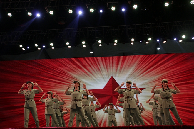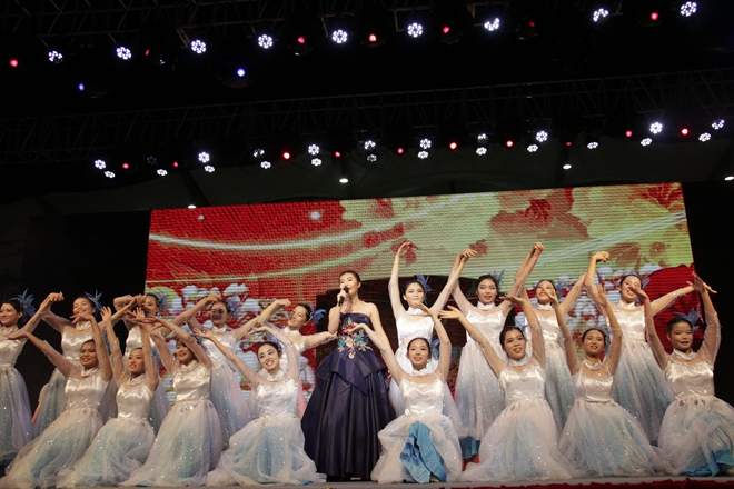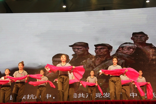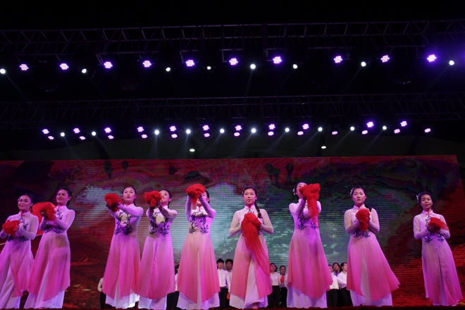 各学院一同表演的红歌串烧用他们婀娜的舞姿、悠扬的歌声带我们重温了当年的红色岁月。新颖独特的阿卡贝拉式音乐演绎的《Rollingin the deep》让人眼前一亮;《我和我的祖国,壮乡情》以和谐、圆润的男女声搭配彰显了鸭脖的合唱成果。