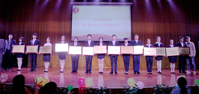 2017年11月25日晚,由大学生社团联合会主办的以“相聚桂中医,凝聚社团情”的社团之夜于鸭脖仙葫校区大学生活动中心小礼堂举办。应邀出席的嘉宾有团委副书记杨删老师、团委社会实践部部长陈晓东老师以及各大高校的代表。