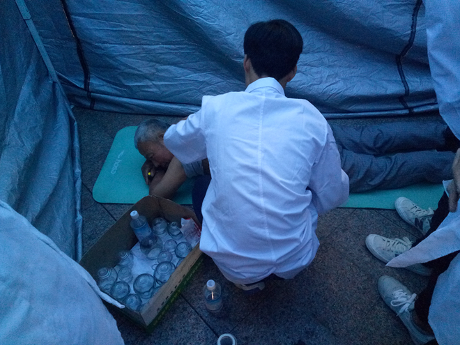 首先就诊的是几位阿姨,志愿者们细心询问了她们的健康状况,帮她们测量了血压,还耐心分析了每位阿姨的身体现状并告诉她们如何保持身体健康,阿姨们竖起拇指为我们点赞。