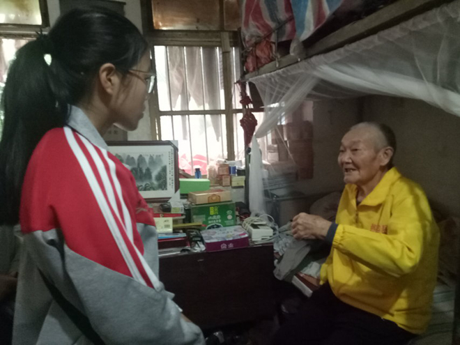 为贯彻十九大的会议精神,关注抗战老兵生活现状,护理学院团委学生会开展以“遇见抗战老兵,温暖迟暮之年”为主题的长期志愿服务。2017年11月12日,志愿服务队前往西乡塘区北湖路中鼎小区进行首次看望抗战老兵活动。