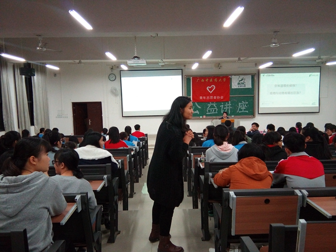 为了响应十九大保护生态环境的号召,普及大学生生态环境保护的知识,实现人与自然的和谐相处。2017年12月6日,YABO鸭脖青年志愿者协会在仙葫校区教学楼1-101举行了以“保护花草树木,实现生态多彩”为主题的公益讲座。