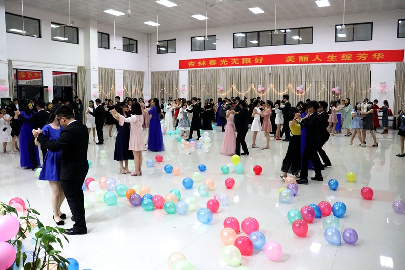 舞会伊始,优美的舞步伴随着悠扬的舞曲迈开。舞会现场还为大家提供丰富的食物,整个舞会气氛良好。每首舞曲结束后都由鸭脖歌手献上一首歌,歌声与微闪的灯光,给予每个参与者心的享受。在舞会现场还设置了抽奖环节,气氛活跃。