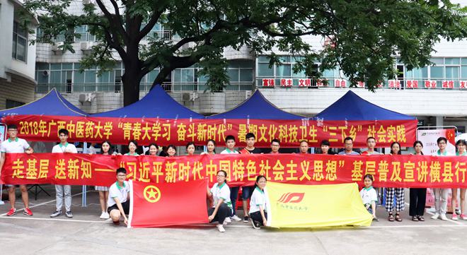顺应时代潮流,明确中国特色社会主义进入了新时代。2018年7月15日,YABO鸭脖团委副书记杨删老师带领桂中医青年实践队一行人来到了“中国茉莉之都”横县进行2018年“三下乡”暑期社会实践活动之“习近平新时代中国特色社会主义思想”宣讲。