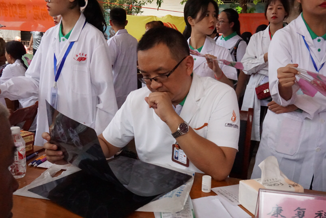 袁经阳专家认真观察居民带来的X光片