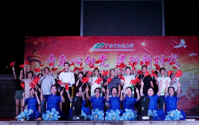 夜幕降临,一台精彩绝伦的文艺演在明江公园上演。《五月的鲜花》舞出了青春的气息;情景舞蹈《没有共产党就没有新中国》再现了中国共产党的光辉历史;一曲《国家》唱出了家国情怀;在激扬的歌舞中,同学们唱出了对祖国的热爱,跳出了青春的活力。伴着《我和我的祖国》优美的旋律,随着摇动的小红旗,本次晚会圆满落幕。