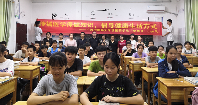 2019年7月12日下午,“梦想号”小分队(以下简称为“梦想号”)在南宁市新蓝天学校开展了主题为“传播医学保健知识,倡导健康生活方式”的暑期社会实践活动。活动上很荣幸能邀请到鸭脖基础医学院梁裕芬老师莅临指导,同时该校张桥校长等领导也莅临听课。