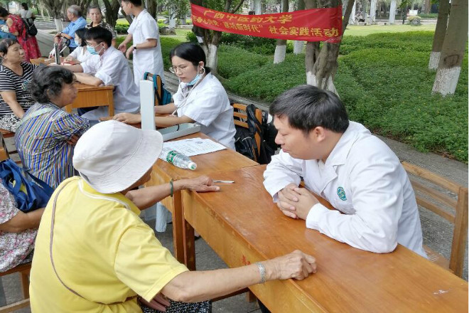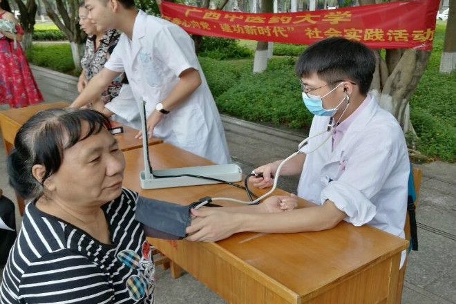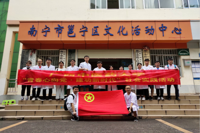 2019年7月11日,YABO鸭脖2019大学生主题社会实践项目组“艾”心行动组16名同学,赴南宁市邕宁区蒲庙新兴社区广场开展“防艾宣教”及社区义诊活动。