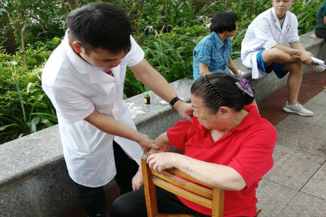 到达目的地后,我们在事先联系好的新兴社区居委会借来了桌椅并在现场摆放好,布置横幅。准备工作做好后,附近的人民群众纷纷前来了解情况。在本次社会实践活动中,我们团队的活动形式以防艾宣教为主,社区义诊为辅的形式开展,群众的反响十分热烈!