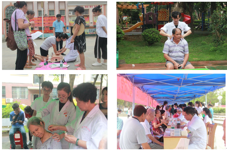 义诊开始后,专家教授的桌前排满了前来寻医问药的当地居民,看着络绎不绝的患者前来,专家教授以及义诊小组的同学们干劲十足,没有丝毫懈怠。本次义诊提供了中医问诊治疗、推拿手法、免费发放药品、艾灸以及急救措施教学等。给患者提供了好的诊断和建议,提升他们对自身健康的认知,也为同学们提供了学习和实践的机会。