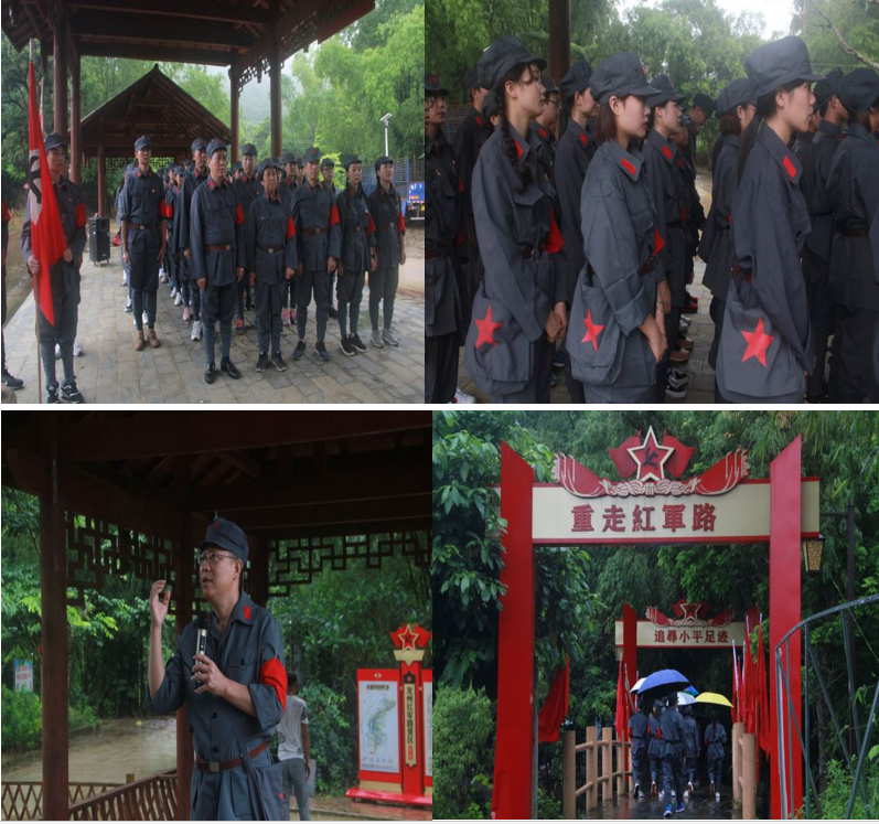 同学们参观了龙州起义纪念馆及其旧址,并在这充满红色基因的地方开展了“青马工程”开班仪式。同学们深深的感受到了革命先辈艰辛与不易,并励志尽己所能报效祖国。年轻一代要争当一名合格的“青马人”,未来掌握在我们手中。大家一起穿上红军服装,扛起红旗来到了水陇—浦茶红军路景区,重走红军路。天气恶劣,山路蜿蜒,依旧坚持重走红军路的随行老师和实践队队员,颇有当年红军不畏艰险的模样。刘武教授在此做了讲话,鼓励同学们不怕吃苦不怕困难,一路向前,一路感受,红色故事听了令人肃然起敬,老师同学们为之动容之余也不忘记学习革命先辈的精神,不断的丰富自己。