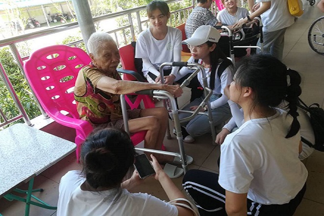 尊老敬老是中华民族的传统美德,而关爱在养老院的空巢老人或需要帮助的人重新得到了家的温暖、爱的呵护是我们每个人的义务和职责。经过一系列的前期准备,2019年7月3日,我班以班级为单位分为三大小组分别前往广西重阳老年公寓、南宁市曙光养老中心以及颐康养老院进行了以“关爱老人 奉献爱心”为主题的社会实践活动。