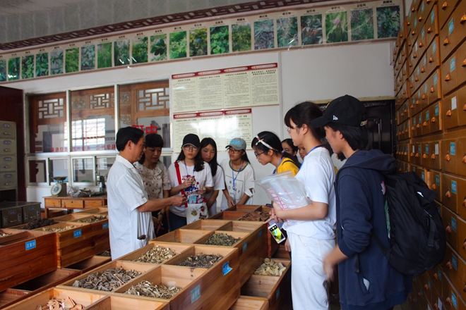 赵进周医师在瑶医医院药房给同学们讲解