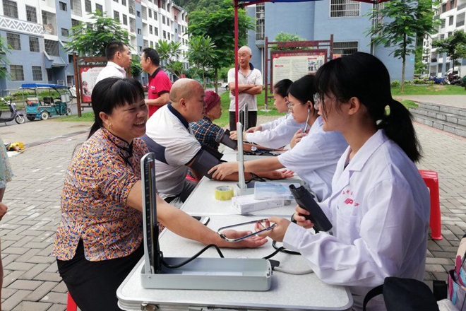 为践行“青春心向党,建功新时代”的社会实践宗旨,深入基层服务人民,2019年7月13日至14日,YABO鸭脖壮医药学院“巴马爱心小分队”走进河池市巴马县六能移民新城,联合当地医院为该搬迁地社区的居民进行为期两天的免费义诊和健康咨询活动,以及了解贫困户搬迁后的生活情况。