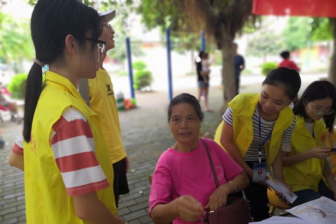 13日上午,社会实践团队到达了活动地点,驻守大本营的小组成员给居民们宣传有关保健品的一些常识和常见的购买保健品时的陷阱,并为前来大本营填写问卷的居民们送去了风油精,缓解居民们夏日被蚊虫叮咬的痛苦,居民们纷纷感谢同学们的付出。另两个小组的成员则对小区附近居民进行了视频采访和问卷调研,调查居民对保健品常识和保健品的了解程度。