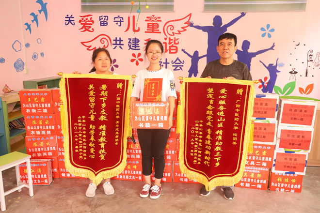 在今年4月10日,鸭脖仙葫校区迎来了山西省席张小学——“山区留守儿童之家”校长王军。王军校长给鸭脖袁艺嘉同学送来一面锦旗和一封感谢信,以表示对袁艺嘉同学数年如一日的爱心支教行动的感激之情。鸭脖团委鼓励、号召师生捐献衣物、书籍等,为山区留守儿童送去温暖。